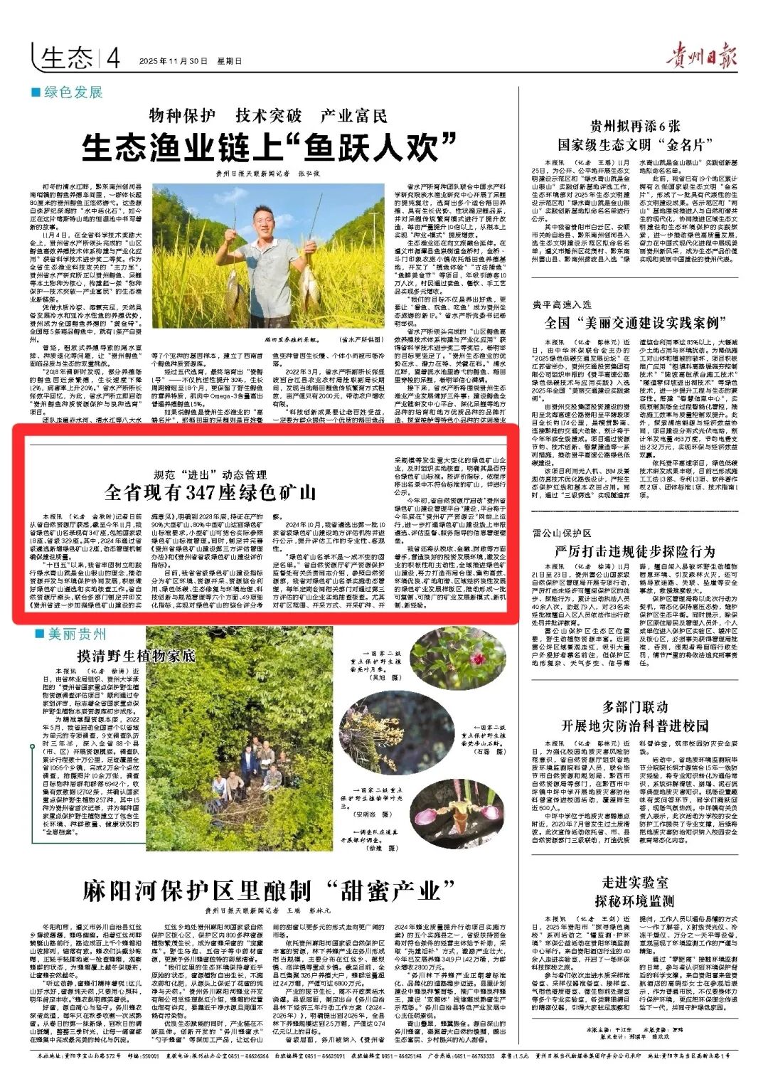 记者从省自然资源厅获悉,截至今年11月,我省绿色矿山名录现有347座,包括国家级18座、省级329座。其中,2024年通过省级遴选新增绿色矿山2座,动态管理机制确保建设质量。