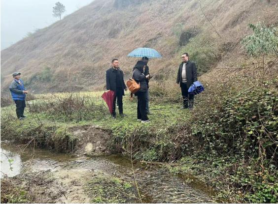 2月22日下午,县自然资源局安勇局长、交易中心张美应主任,八弓镇袁仁义部长、杨燕平副镇长等人一行到泥山村实地调研下寨组沟边至石榴坡机耕道(产业路)项目,调研期间,第一书记邹光城同志将村民的心声与调研组做交流,调研组结合泥山村实际情况,提出宝贵意见建议。