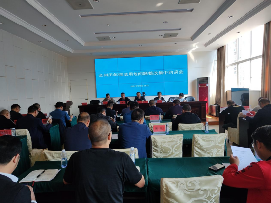 2023年10月15日,黔东南州历年违法用地问题整改集中约谈会在州自然资源局召开,州自然资源局、州交通运输局、州水务局、州纪委监委派驻第六纪检监察组及部分项目业主单位负责同志参会。